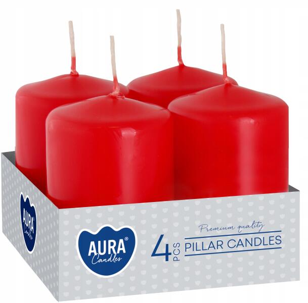AURA Hagyományos paraffin gyertya Illatmentes Piros Aura 4 db (sw40/60-030)ALLEGRO