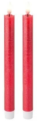 Kaemingk Hosszú viaszos led gyertya piros 2db 24cm elemes (8718533978520)