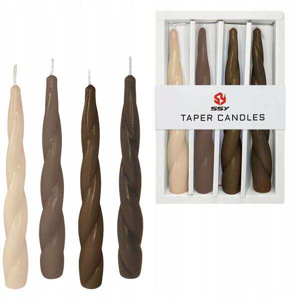 Spirál alakú, illatmentes, dekorációs gyertyák, barna, 19 cm, 4 db (B0CHMG47HV)ALLEGRO